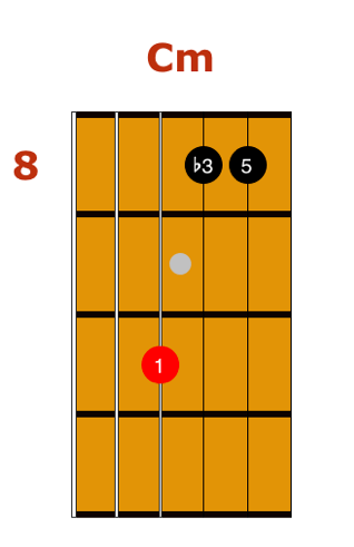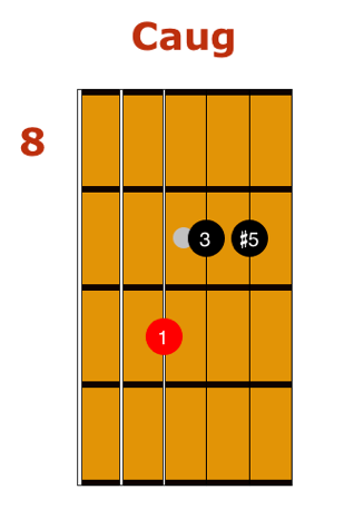 The next triad is an augmented triad, made up the root, third, and sharp fifth. The process become simple once you get used to it. Just start with a major triad, and raise the fifth by one fret, or a half step.