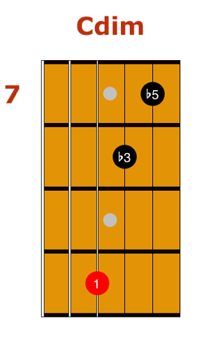 The last triad you should be familiar with is the diminished triad. This one involves the root, flat third, and flat fifth. Use a major triad, and bring the third and fifth down by a half step to get a diminished triad.